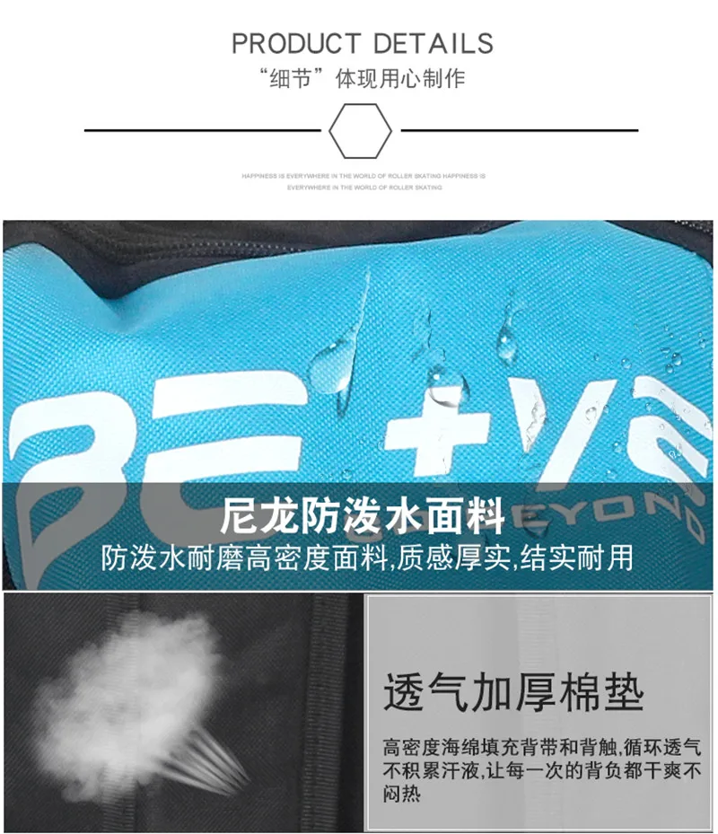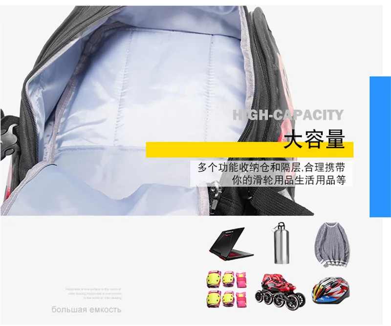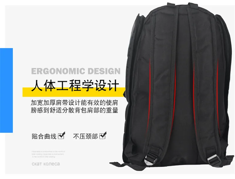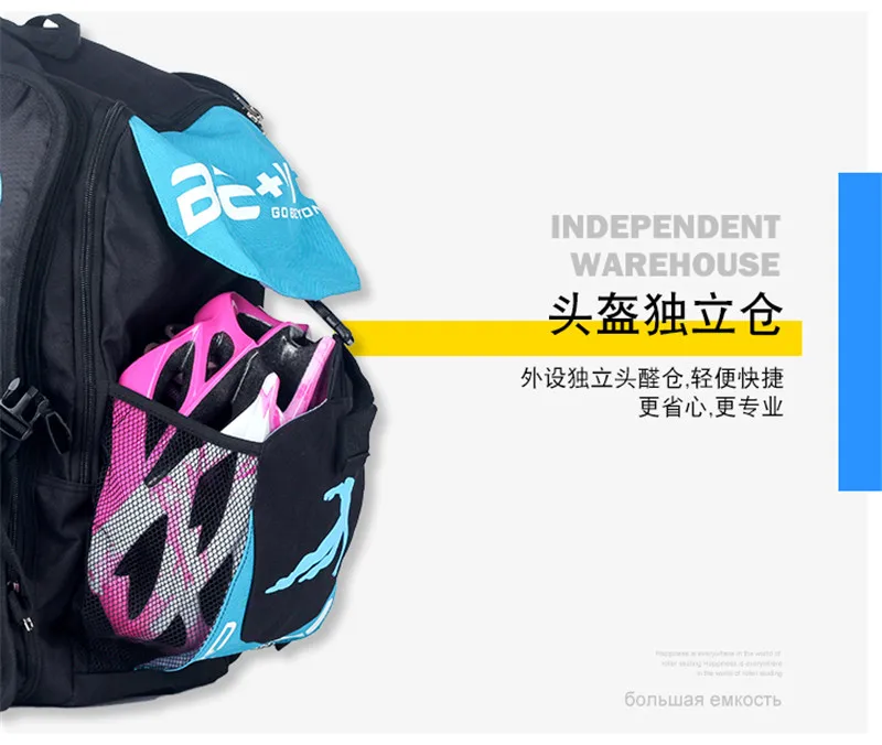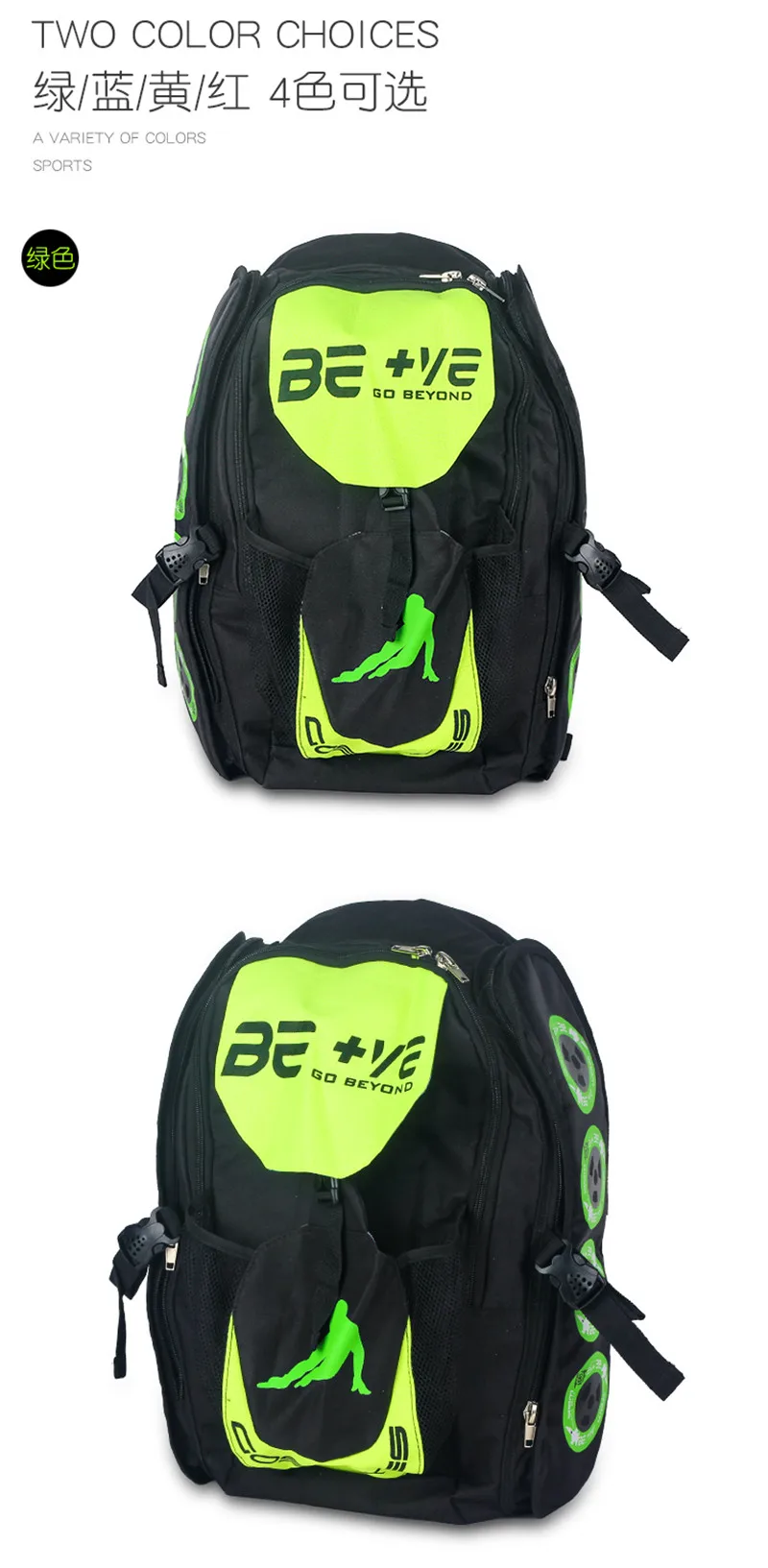 this speed skates backpack can hold 4X110mm speed skates shoes and helmet and protective pads; it is made of good nylon material, with breathable experience and heavy carry system; you can choose red / yellow / blue / green color; the size is 52cm*32cm*20cm;